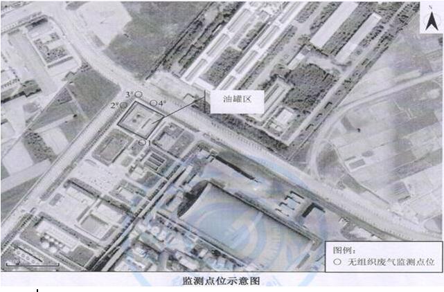 (2)監(jiān)測點位:油罐四周上風(fēng)向設(shè)2個監(jiān)測點、下風(fēng)向設(shè)2個監(jiān)測點。