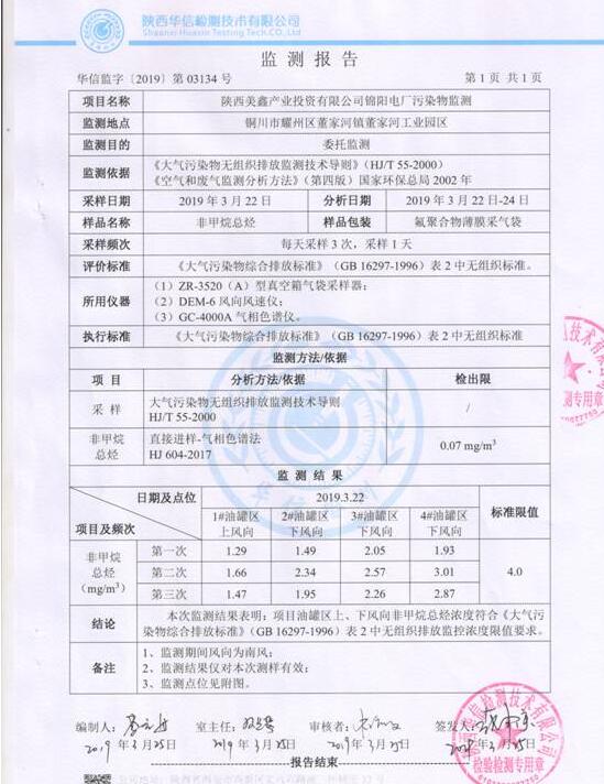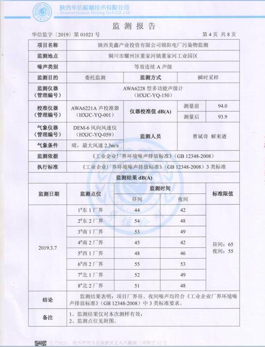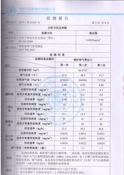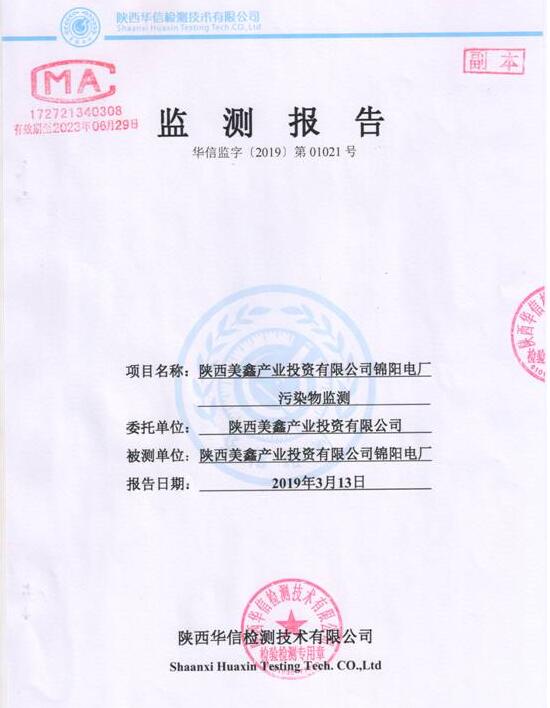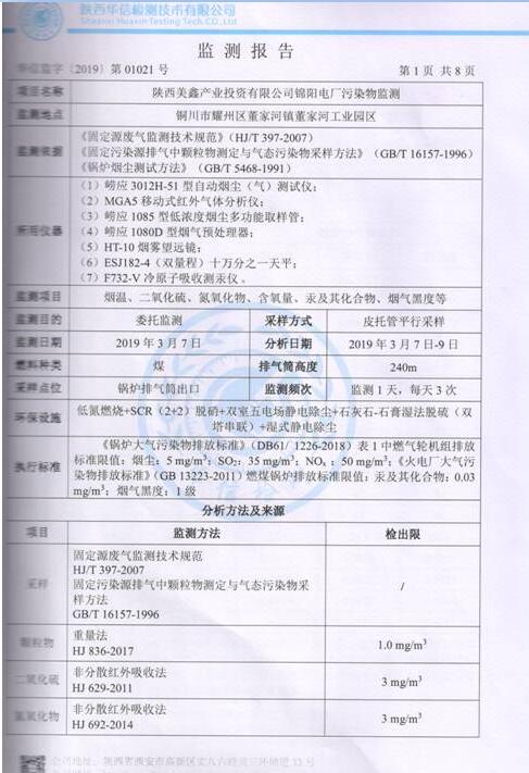 陜西美鑫產(chǎn)業(yè)投資有限公司錦陽電廠2×350MW機組2019年1季度自行監(jiān)測如下: