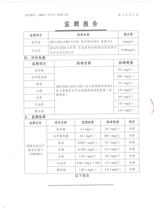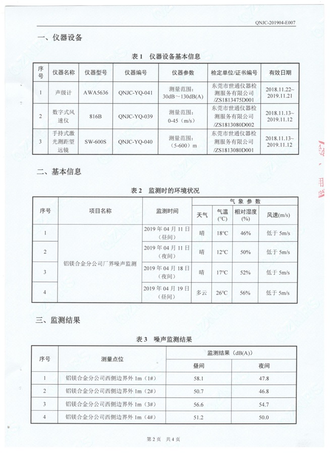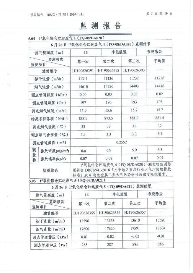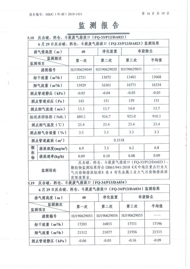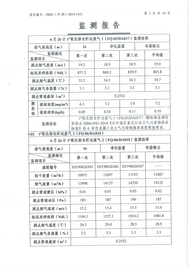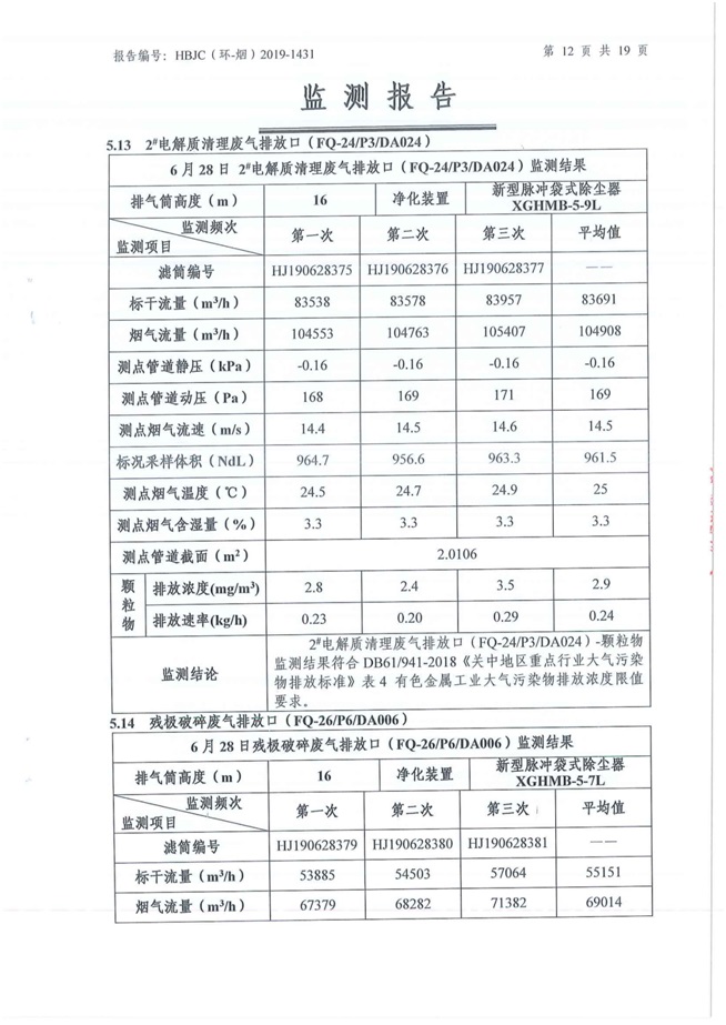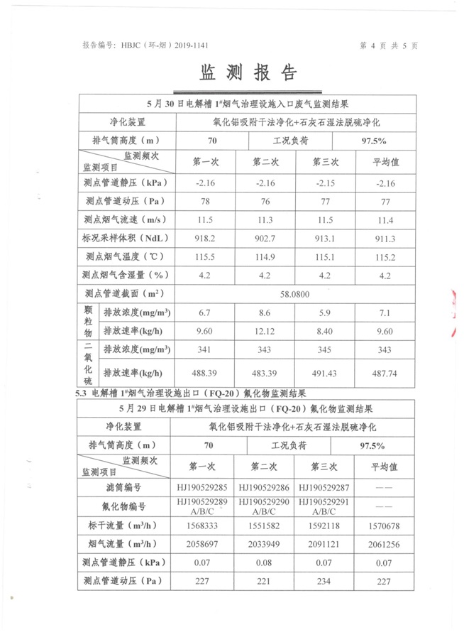 一、基礎(chǔ)信息: 陜西美鑫產(chǎn)業(yè)投資有限公司 統(tǒng)一社會(huì)信用代碼:91610200567136996Y 法定代表人:高曉兵 生產(chǎn)地址:陜西省銅川市董家河工業(yè)園區(qū) 聯(lián)系方式:09196982605 生產(chǎn)經(jīng)營(yíng)和管理服務(wù)的主要內(nèi)容、產(chǎn)品及規(guī)模: 美鑫公司在陜西有色、陜西煤化兩大集團(tuán)的正確領(lǐng)導(dǎo)下,在銅川市委、市政府的關(guān)心支持下,充分利用銅川資源型城市轉(zhuǎn)型政策,依托園區(qū)區(qū)位優(yōu)勢(shì),擬投資150億元,建設(shè)年產(chǎn)30萬(wàn)噸預(yù)焙陽(yáng)極、120萬(wàn)噸煤礦、30萬(wàn)噸鋁鎂合金及配套動(dòng)力站、20萬(wàn)噸鋁深加工、年吞吐量500—800萬(wàn)噸物流園等循環(huán)經(jīng)濟(jì)項(xiàng)目。該集群項(xiàng)目已被列入《陜西省國(guó)民經(jīng)濟(jì)和社會(huì)發(fā)展第十二個(gè)五年規(guī)劃綱要》,為陜西省“58123”項(xiàng)目之一。美鑫公司以循環(huán)經(jīng)濟(jì)為路徑,堅(jiān)持經(jīng)濟(jì)增長(zhǎng)與環(huán)境保護(hù)協(xié)調(diào)發(fā)展,聚合資源與資本,走綠色發(fā)展、清潔發(fā)展、低碳發(fā)展的循環(huán)經(jīng)濟(jì)轉(zhuǎn)型升級(jí)之路。 陜西美鑫鋁鎂合金分公司采用的500kA預(yù)焙陽(yáng)極電解槽,自動(dòng)化程度高,電解槽打殼、加料全過(guò)程均由微機(jī)自動(dòng)控制,從而使槽罩開啟次數(shù)顯著降低,電解槽集氣效率能夠達(dá)到99%,大大地減少了煙氣無(wú)組織排放。項(xiàng)目配置了2套電解煙氣凈化系統(tǒng),經(jīng)捕集的煙氣通過(guò)排煙支管進(jìn)入排煙總管,采用電解鋁生產(chǎn)原料—氧化鋁吸附阻濾煙氣中的氟化氫氣體及含氟煙塵,吸附后的載負(fù)氧化鋁進(jìn)入袋式除塵器,經(jīng)氣固分離后進(jìn)入石灰石—石膏脫硫系統(tǒng)脫硫。 陜西美鑫產(chǎn)業(yè)投資有限公司鋁鎂合金分公司2019年2季度自行監(jiān)測(cè)如下: 二、監(jiān)測(cè)方案: 1 大氣污染源監(jiān)測(cè)