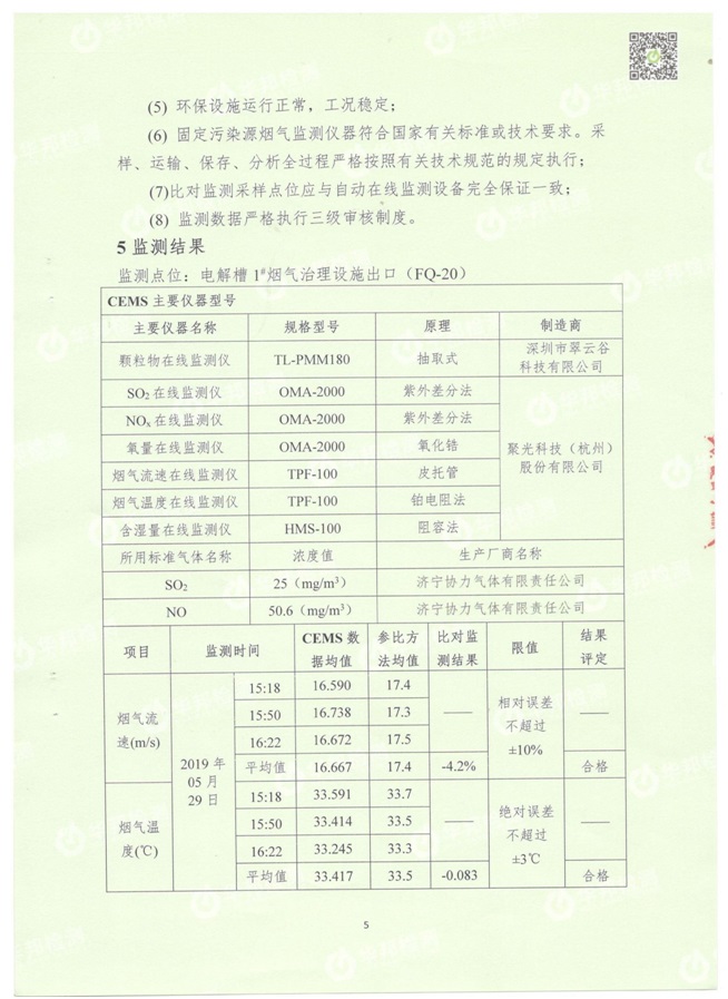 1.1電解槽煙氣治理設(shè)施總排口CEMS在線設(shè)備比對(duì)監(jiān)測(cè)