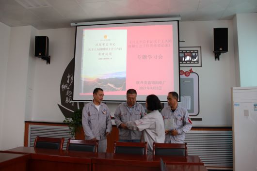 9月3日上午,錦陽電廠召開《習(xí)近平總書記關(guān)于工人階級和工會工作的重要論述》專題學(xué)習(xí)會議。電廠班子領(lǐng)導(dǎo)、中層干部、女工委員參加,電廠黨總支副書記、工會主席劉銀玲主持會議。 會上,劉銀玲首先向與會人員簡要介紹了《習(xí)近平總書記關(guān)于工人階級和工會工作的重要論述》讀本的主要內(nèi)容,領(lǐng)學(xué)了書本的第一章節(jié)內(nèi)容。要求與會人員將學(xué)習(xí)貫徹習(xí)近平總書記重要講話精神同學(xué)習(xí)貫徹習(xí)近平總書記關(guān)于工人階級和工會工作的重要論述結(jié)合起來,切實(shí)履行好工會組織的政治責(zé)任。 檢修部主任、檢修工會小組長陳領(lǐng)平表示,接下來要將學(xué)習(xí)貫徹習(xí)近平總書記“七一”重要講話精神和黨史學(xué)習(xí)教育及學(xué)習(xí)《習(xí)近平總書記關(guān)于工人階級和工會工作的重要論述》緊密聯(lián)系起來,深入職工當(dāng)中,強(qiáng)化溝通,進(jìn)一步了解、關(guān)心職工生活、工作中的困難,及時(shí)給予幫助,主動做好職工、群眾工作。 女工委員、發(fā)電部化水專工張帆表示,將深刻領(lǐng)悟《習(xí)近平總書記關(guān)于工人階級和工會工作的重要論述》內(nèi)涵意義,接下來將配合電廠工會,多組織形式多樣職工活動,增強(qiáng)職工凝聚力,廣大征集職工意見建議,采納合理化意見,更有效推動工會工作。 就進(jìn)一步做好工會工作,劉銀玲要求:一是各黨支部、工會小組要帶頭加強(qiáng)理論學(xué)習(xí),創(chuàng)新學(xué)習(xí)方式,進(jìn)一步掀起學(xué)習(xí)宣傳的高潮;二是加強(qiáng)學(xué)習(xí)宣傳力度,營造《習(xí)近平總書記關(guān)于工人階級和工會工作的重要論述》學(xué)習(xí)濃厚氛圍,引導(dǎo)廣大職工堅(jiān)定不移聽黨話跟黨走;三是深刻領(lǐng)會《習(xí)近平總書記關(guān)于工人階級和工會工作的重要論述》的豐富內(nèi)涵、重大意義,更好的武裝頭腦指導(dǎo)實(shí)踐、工作,為電廠機(jī)組安全環(huán)保平穩(wěn)運(yùn)行提供保障。 會后,電廠工會為各工會小組組長發(fā)放了《習(xí)近平總書記關(guān)于工人階級和工會工作的重要論述》書籍。 |