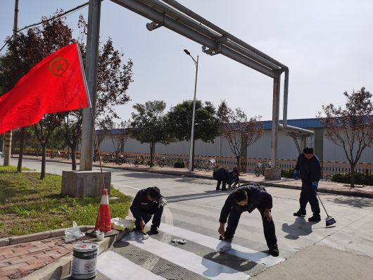 為了保障分公司廠區(qū)道路車輛及職工通行安全,規(guī)范廠區(qū)安全標(biāo)準(zhǔn)化建設(shè),9月30日上午,分公司團(tuán)總支組織8名團(tuán)員青年志愿者在廠區(qū)主干道開(kāi)展“繪制安全斑馬線,文明通行你我他”主題團(tuán)日活動(dòng),用實(shí)際行動(dòng)共同營(yíng)造安全和諧文明的廠區(qū)工作環(huán)境。 活動(dòng)當(dāng)天,團(tuán)員青年志愿者們肩扛團(tuán)旗,手拿工具來(lái)到繪制區(qū)域,F(xiàn)場(chǎng)大家分工明確,配合默契,測(cè)量、標(biāo)記、走線、刷漆,一氣呵成……繪制過(guò)程中,大家采取先繪制一半,做好警示,等油漆干后再繪制另一半,這樣既保證了車輛的正常通行,也確保了繪制好的斑馬線不受碾壓而遭到破壞。經(jīng)過(guò)三個(gè)多小時(shí)的不懈努力,斑馬線繪制工作終于完成,一道道整齊的線條,不僅保證了職工、車輛通行安全,也為廠區(qū)增添了一道亮麗的風(fēng)景線。 “我是一塊磚,哪里需要哪里搬”。此次活動(dòng)充分彰顯了團(tuán)員青年的生力軍和突擊隊(duì)作用,也進(jìn)一步規(guī)范了廠區(qū)人車分流管理,為營(yíng)造文明、和諧的廠區(qū)交通環(huán)境做出了積極貢獻(xiàn)。 |