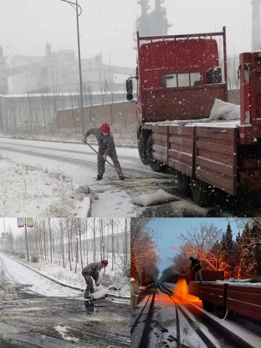 雪已經(jīng)斷斷續(xù)續(xù)下了三天,天氣預(yù)報(bào)顯示接下來(lái)還將持續(xù)數(shù)天,工藝車隊(duì)黨支部號(hào)召車間黨員、積極分子、班組長(zhǎng)持續(xù)堅(jiān)守一線,及時(shí)清理積雪。目前,在各個(gè)坡道防滑現(xiàn)場(chǎng)、道路運(yùn)輸彎道處、叉車倒運(yùn)鋁錠現(xiàn)場(chǎng),隨處可見(jiàn)堅(jiān)守的這群人,他們身先士卒、率先垂范,用行動(dòng)全力保障公司職工出行安全和生產(chǎn)安全。