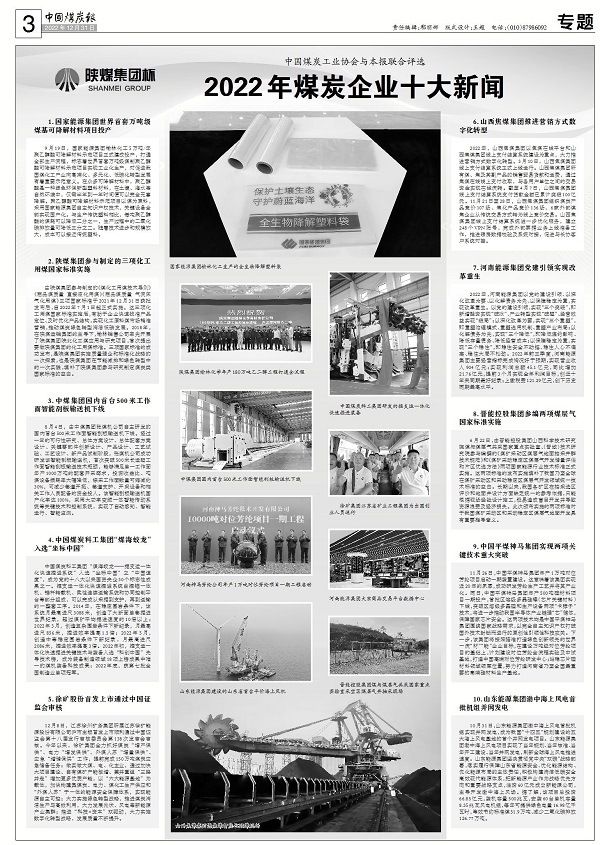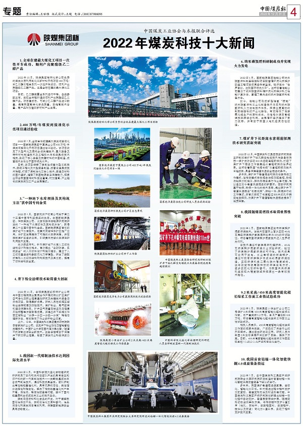 2022年12月31日,中國煤炭工業(yè)協(xié)會與中國煤炭報聯(lián)合評選并發(fā)布2022年煤炭行業(yè)十大新聞、煤炭科技十大新聞、煤炭企業(yè)十大新聞,陜煤集團(tuán)多條新聞獲評入選,展現(xiàn)了2022年企業(yè)發(fā)展多個領(lǐng)域的成績。 其中,2022年煤炭行業(yè)十大新聞第5條《煤炭企業(yè)國企改革三年行動成效顯著》提到:陜煤集團(tuán)形成了“第一議題”制度全覆蓋、董事會應(yīng)建盡建全覆蓋,黨委會前置研究重大經(jīng)營管理事項清單全建立、董事會重大決策部署跟進(jìn)督辦機(jī)制全建立的“兩覆蓋、兩建立”工作機(jī)制;修訂完善現(xiàn)代企業(yè)法人治理結(jié)構(gòu)等16項改革及相關(guān)制度,外部董事占多數(shù)企業(yè)完成率達(dá)100%。 同時,《全球在建最大煤化工項目一次性開車成功,順利產(chǎn)出聚酯級乙二醇產(chǎn)品》《井下粉塵治理技術(shù)取得重大創(chuàng)新》《2米采高/450米高度智能化超長綜采工作面工業(yè)性試驗成功》入選2022年煤炭科技十大新聞;《陜煤集團(tuán)參與制定的三項化工用煤國家標(biāo)準(zhǔn)實施》2022年煤炭企業(yè)十大新聞,并選用“陜煤集團(tuán)榆林化學(xué)年產(chǎn)180萬噸乙二醇工程打通全流程”新聞圖片。 2022年煤炭行業(yè)十大新聞《煤炭企業(yè)國企改革三年行動成效顯著》:2022年是國企改革三年行動收官之年,各大型國有煤炭企業(yè)紛紛交出優(yōu)異成績單。國家能源集團(tuán)國企改革三年行動主體任務(wù)基本完成,應(yīng)建董事會范圍內(nèi)的508家企業(yè)全部實現(xiàn)應(yīng)建盡建和外部董事占多數(shù);經(jīng)理層任期制和契約化管理更加精準(zhǔn),收入分配持續(xù)向基層一線和關(guān)鍵崗位傾斜。陜煤集團(tuán)形成了“第一議題”制度全覆蓋、董事會應(yīng)建盡建全覆蓋,黨委會前置研究重大經(jīng)營管理事項清單全建立、董事會重大決策部署跟進(jìn)督辦機(jī)制全建立的“兩覆蓋、兩建立”工作機(jī)制;修訂完善現(xiàn)代企業(yè)法人治理結(jié)構(gòu)等16項改革及相關(guān)制度,外部董事占多數(shù)企業(yè)完成率達(dá)100%。河南能源集團(tuán)國企改革三年行動方案中的164項具體任務(wù)已全部完成,中國特色現(xiàn)代企業(yè)制度更加成熟定型,產(chǎn)業(yè)資產(chǎn)結(jié)構(gòu)更加優(yōu)化,市場化經(jīng)營機(jī)制進(jìn)一步完善,企業(yè)自主創(chuàng)新活力更加充足。 2022年煤炭科技十大新聞《全球在建最大煤化工項目一次性開車成功,順利產(chǎn)出聚酯級乙二醇產(chǎn)品》:2022年10月,陜煤集團(tuán)榆林化學(xué)公司負(fù)責(zé)的煤炭分質(zhì)利用制化工新材料示范項目180萬噸/年乙二醇工程單系列一次性開車成功,順利產(chǎn)出聚酯級乙二醇產(chǎn)品。這是全球在建的最大煤化工項目。 目前,乙二醇裝置全系列運(yùn)行平穩(wěn),各類參數(shù)正常,實現(xiàn)全流程打通并順利產(chǎn)出聚酯級乙二醇產(chǎn)品。項目建成后,可減少乙二醇產(chǎn)品進(jìn)口數(shù)量,提高我國高端化學(xué)品質(zhì)量,助推高技術(shù)含量、高產(chǎn)品附加值的新材料產(chǎn)業(yè)發(fā)展。 2022年煤炭科技十大新聞《井下粉塵治理技術(shù)取得重大創(chuàng)新》:2022年11月,由陜煤集團(tuán)紅柳林礦業(yè)公司與中國工程院院士袁亮合作開展的陜北礦區(qū)煤礦空氣凈化與職業(yè)健康基礎(chǔ)研究及關(guān)鍵技術(shù)裝備與示范項目,取得最新成果。研究人員在采掘區(qū)域粉塵運(yùn)移規(guī)律及防控技術(shù),煤礦粉塵、尾氣致病機(jī)理與保障體系,礦井空氣質(zhì)量在線監(jiān)測與健康風(fēng)險預(yù)警等方面取得成果,并提出井下采掘工作面區(qū)域粉塵“分源—分區(qū)—分級—分策”精準(zhǔn)治理新方法,有效降低了作業(yè)場所粉塵濃度。 此外,今年,中國煤炭科工集團(tuán)重慶研究院聯(lián)手曹家灘礦業(yè)公司,攻克井下粉塵防治及智能管控關(guān)鍵技術(shù);中國礦業(yè)大學(xué)在國內(nèi)首次提出巷/隧道干式濾筒過濾除塵新技術(shù)。這些舉措有助于保障井下職工職業(yè)健康,彰顯了煤炭行業(yè)科技保安力量。 2022年煤炭科技十大新聞《2米采高/450米高度智能化超長綜采工作面工業(yè)性試驗成功》:2022年1月,陜煤集團(tuán)小保當(dāng)?shù)V業(yè)公司二號煤礦2米采高/450米高度智能化超長綜采工作面,日產(chǎn)量突破5.2萬噸、單月產(chǎn)量達(dá)到108萬噸,標(biāo)志著高度智能化超長綜采工作面工業(yè)性試驗成功。 相關(guān)人員表示,450米高度智能化超長綜采工作面的探索與實踐,廣泛吸收了來自行業(yè)的開采需求。通過自主研發(fā)與應(yīng)用,研究人員為我國2米左右煤層開采創(chuàng)新了思路、提供了方案。目前,450米高度智能化超長綜采工作面實現(xiàn)單班7人的少人化開采和常態(tài)化運(yùn)行。 2022年煤炭企業(yè)十大新聞《陜煤集團(tuán)參與制定的三項化工用煤國家標(biāo)準(zhǔn)實施》:由陜煤集團(tuán)參與制定的《煤化工用煤技術(shù)導(dǎo)則》《商品煤質(zhì)量直接液化用煤》《商品煤質(zhì)量氣流床氣化用煤》三項國家標(biāo)準(zhǔn)于2021年12月31日獲批發(fā)布后,自2022年7月1日起正式實施。這三項化工用煤國家標(biāo)準(zhǔn)實施后,有助于企業(yè)