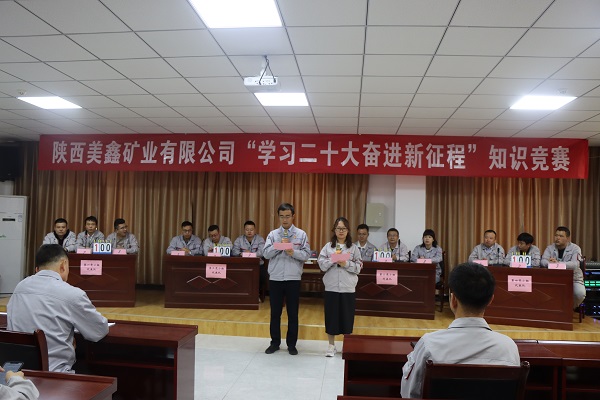 為引導(dǎo)公司廣大職工深刻領(lǐng)會(huì)、準(zhǔn)確把握黨的二十大精神,4月17日下午,礦業(yè)公司黨支部開展“學(xué)習(xí)二十大 奮進(jìn)新征程”知識(shí)競(jìng)賽活動(dòng),以賽促學(xué)、以學(xué)促行,在檢驗(yàn)廣大黨員干部職工的學(xué)習(xí)成效的同時(shí),又一次掀起了學(xué)習(xí)貫徹黨的二十大精神的熱潮。 為搞好此次活動(dòng),活動(dòng)前夕,黨支部成立了活動(dòng)實(shí)施小組,分別就競(jìng)賽試題的選用、活動(dòng)開展的方式、參賽選手的確定及裁判仲裁組的人選等事宜進(jìn)行了嚴(yán)格把關(guān),精心謀劃、層層部署,為活動(dòng)開展的高質(zhì)量提供了堅(jiān)強(qiáng)的保障。 活動(dòng)分為“必答、搶答、對(duì)戰(zhàn)、風(fēng)險(xiǎn)”四個(gè)答題環(huán)節(jié),以黨小組為單位組建伍參加比賽;顒(dòng)中,臺(tái)上參賽選手積極踴躍答題,臺(tái)下觀眾為各自選手加油助威,觀眾席不時(shí)傳來(lái)一陣陣熱烈的掌聲...活動(dòng)歷時(shí)2小時(shí),經(jīng)過(guò)激烈的比拼,最終第三黨小組獲得了此次競(jìng)賽的第一名。 此次競(jìng)賽活動(dòng)的開展,進(jìn)一步激發(fā)了公司廣大黨員干部的學(xué)習(xí)熱情,加深了大家對(duì)黨的二十大精神的認(rèn)識(shí)和理解,為新征程上推動(dòng)各項(xiàng)工作高質(zhì)量發(fā)展貢獻(xiàn)力量。 |