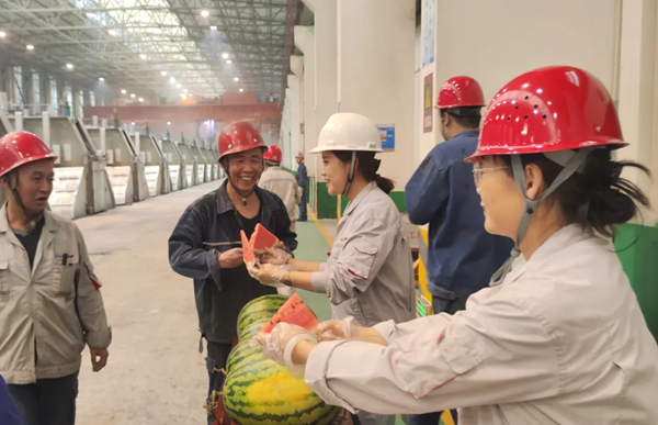 連日來驕陽(yáng)似火,高溫天氣持續(xù)籠罩,陜西美鑫鋁鎂合金分公司生產(chǎn)一線一派繁忙景象,“奮戰(zhàn)二季度 實(shí)現(xiàn)雙過半”活動(dòng)正如火如荼的進(jìn)行著。公司女工委積極響應(yīng)公司黨政號(hào)召,6月14日下午,在電解一、二車間開展“戰(zhàn)酷暑、保安全 與一線職工肩并肩”夏季送清涼活動(dòng),為奮戰(zhàn)在高溫一線的職工送去一絲清涼和一份關(guān)懷。 “師傅,辛苦了!來,吃塊西瓜解解暑。高溫天氣再加上高溫的工作環(huán)境,一定要多補(bǔ)充水分,做好防暑降溫工作,照顧好自己的身體......” “安全第一啊,安全生產(chǎn)最重要,這個(gè)月又是安全生產(chǎn)月,工作時(shí)一定切記,別違規(guī)違章.......” 陣陣清涼,是組織的關(guān)愛;句句叮囑,將關(guān)心轉(zhuǎn)化為對(duì)安全生產(chǎn)的期盼。職工們也紛紛表示,在接下來的工作中要繼續(xù)發(fā)揚(yáng)吃苦耐勞、求真務(wù)實(shí)的精神,以更加飽滿的熱情投入到安全生產(chǎn)中去,力爭(zhēng)實(shí)現(xiàn)時(shí)間任務(wù)雙過半的生產(chǎn)目標(biāo)。 |